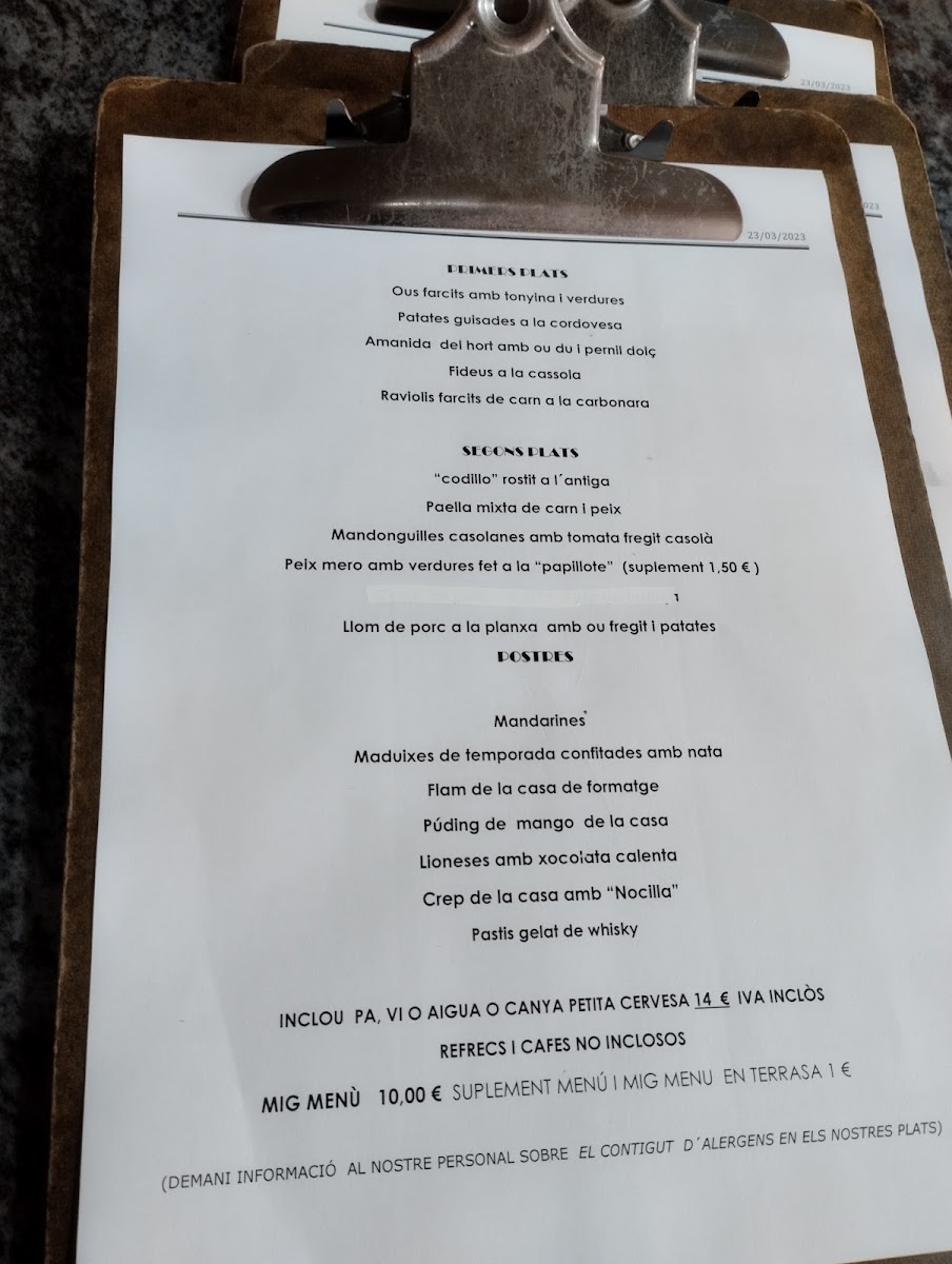 Among the highlights, the macarrons a la napolitana and crema de carbassa stand out as comforting starters, while the homemade croquetes and traditional faves i caxofes tantalize the taste buds. For main courses, the succulent entrecot with grilled vegetables and the expertly fried seitons leave diners in awe.